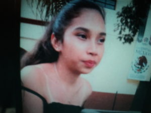 SAMANTA GISEL GARCÍA HERNÁNDEZ, mide 1.50 Cm., es de complexión delgada, tez blanca, ojos pequeños color café claro y cejas pobladas, cabello color castaño, largo y ondulado.