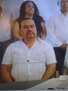Dagoberto Rivera Jaimes, presidente de la Federación del Transporte, acompañado del presidente del Transporte a Aurelio Carmona,